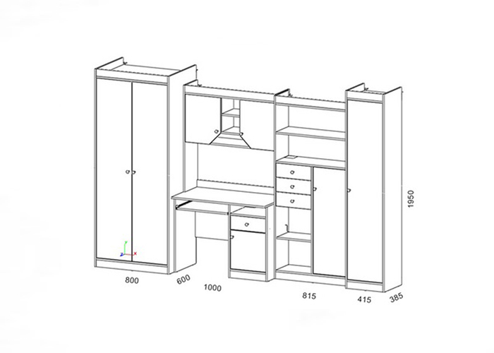 Модульная коллекция мебели для обустройства детской комнаты. Материал: МДФ покрытый плёнкой, ЛДСП.