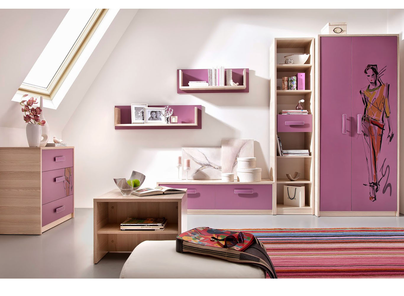 Стильная и современная мебель для детей и молодежи. Многофункциональна и удобна, вместительные места хранения. Модульный набор мебели в одноместную детскую для девочки. Возрастная категория: для молодежи (10-18 лет). Цвет: Розовый, текстура торцов – дерево (любой).