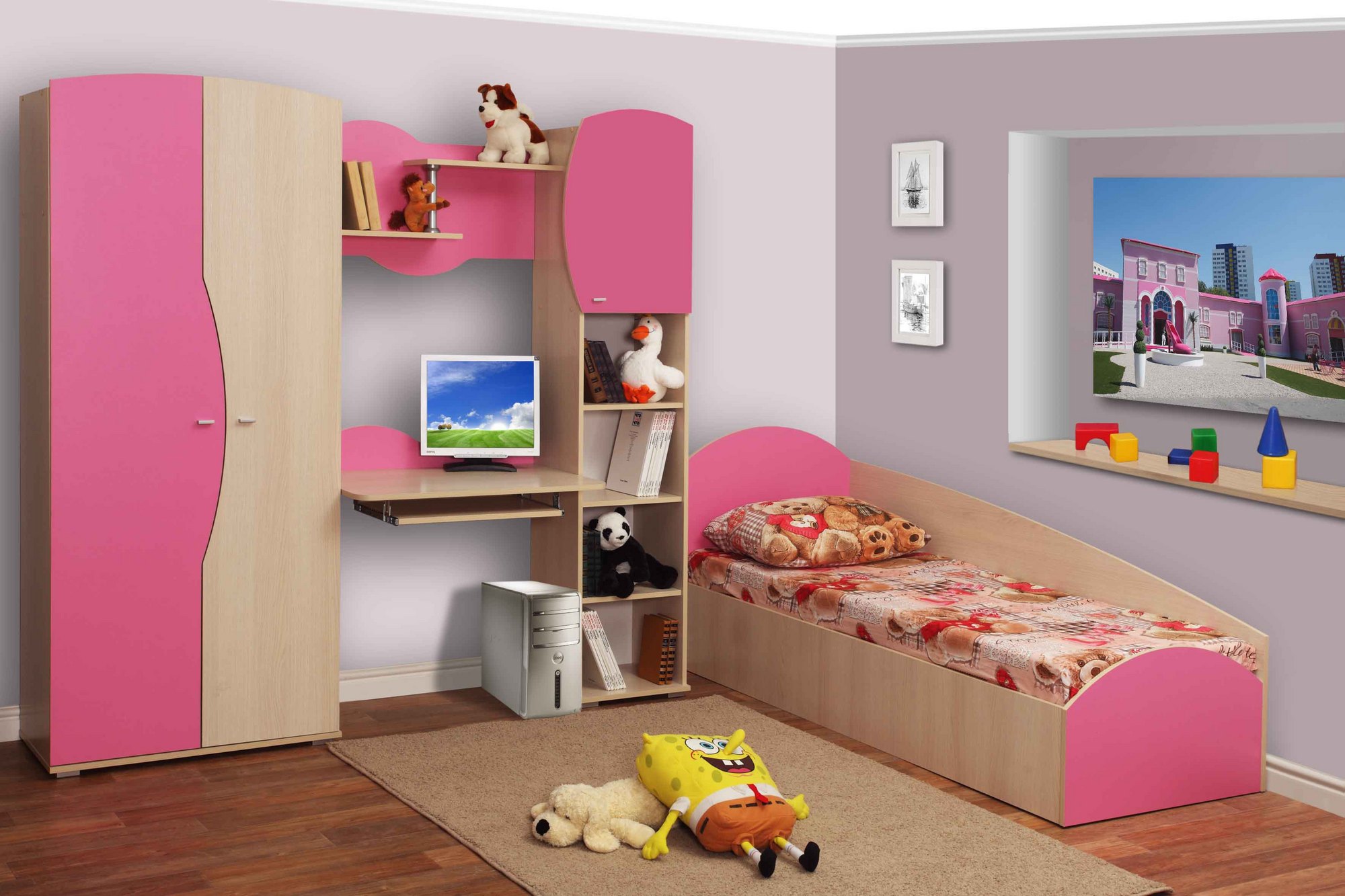 Модульный набор корпусной мебели. Кровать, шкаф, полки, рабочее место.