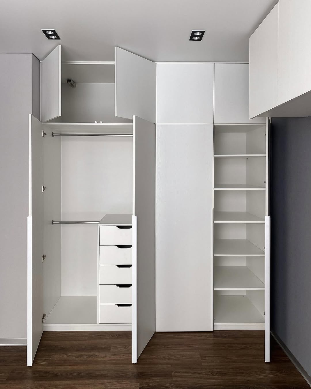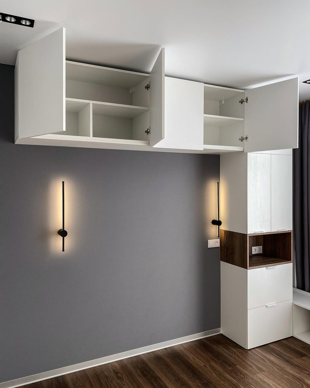 – Верхний блок с навесными шкафами для хранения одежды и игрушек