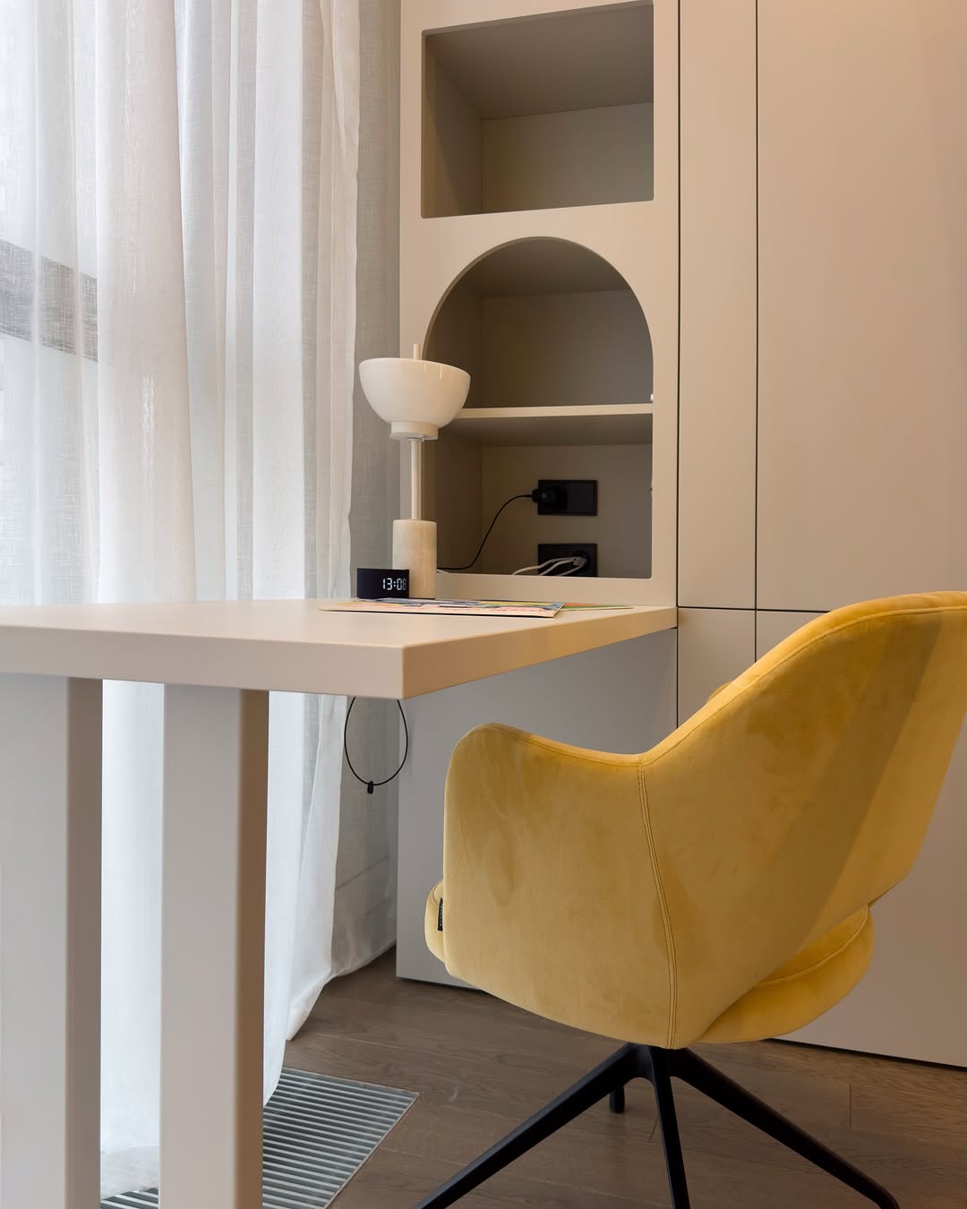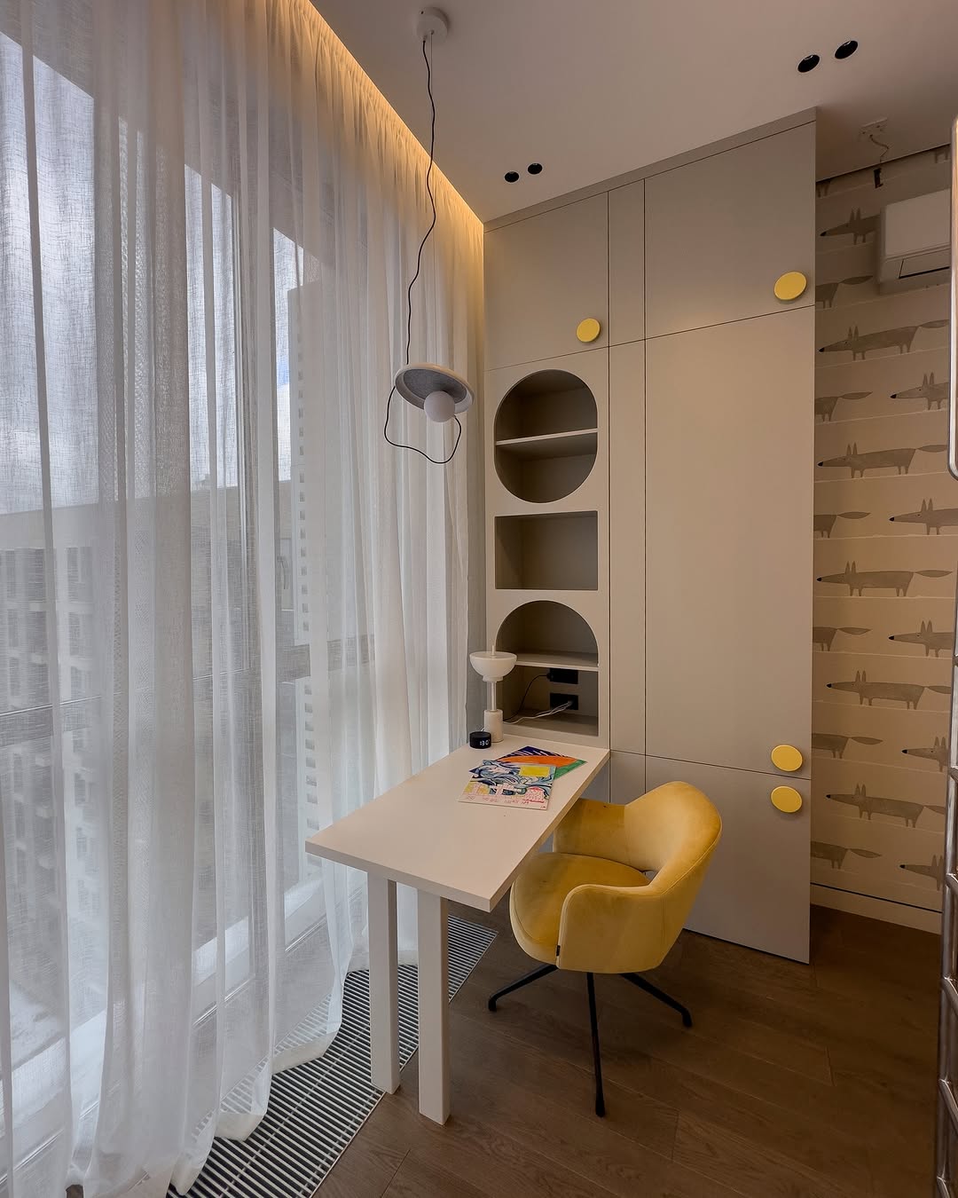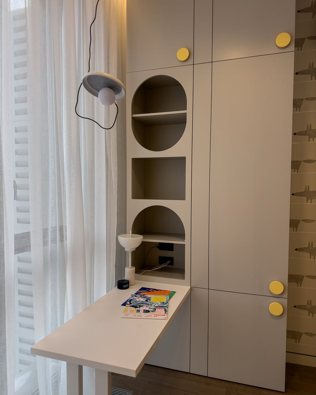 – Рабочая зона с выносной столешницей у окна — ЛДСП Egger идеально для естественного освещения
