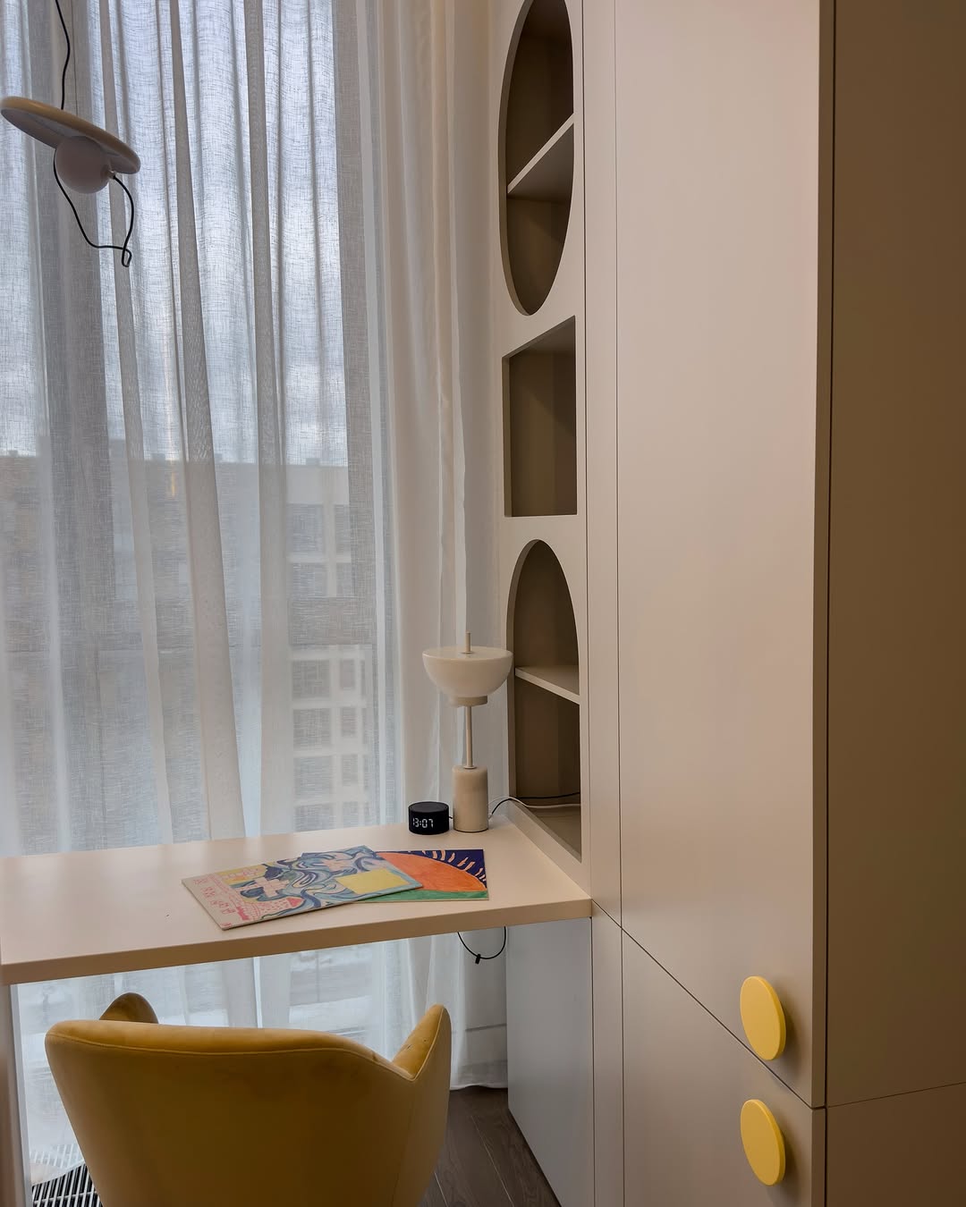 – Круглые и арочные открытые ниши добавляют интерьеру игривости