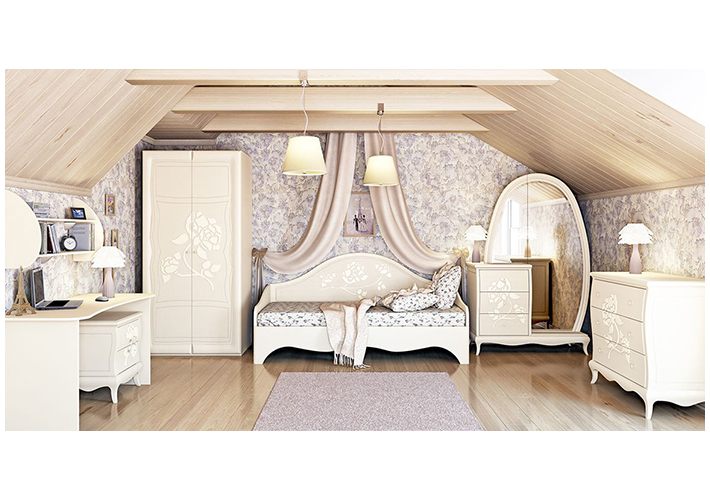 Набор для детской в светлых тонах. Материал: ЛДСП. Цена указана за кровать.