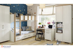 Эстетичная модульная коллекция мебели для обустройства детской комнаты. Материал: МДФ покрытый плёнкой, ЛДСП.