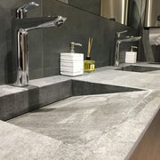 Стильный и современный умывальник для ванной комнаты. Выполнен в цвете бетон.