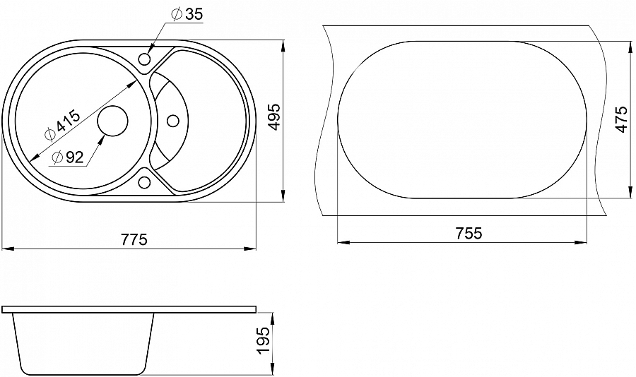 Размер мойки: 775х495 мм.