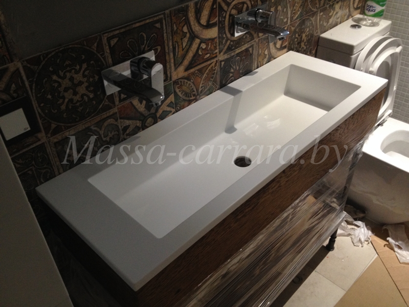 код 80684Глубокая прямоугольная раковина. Искусственный камень белого цвета.