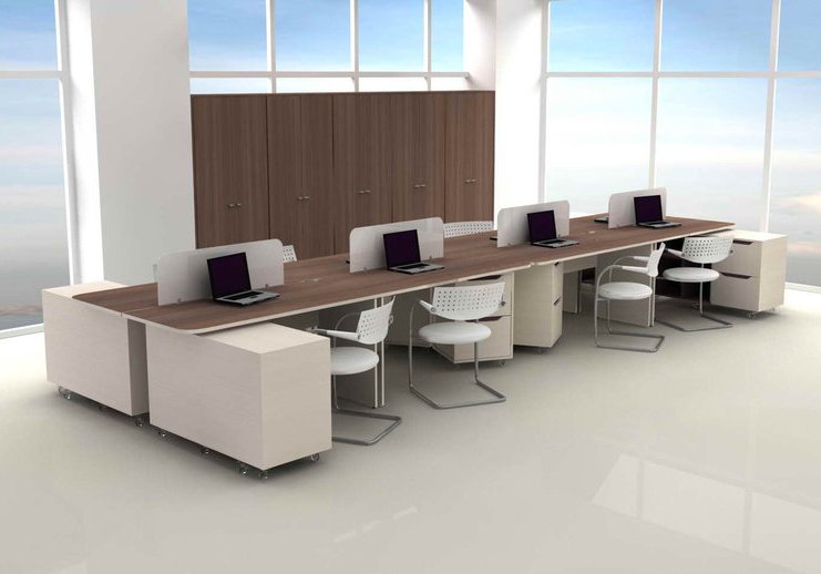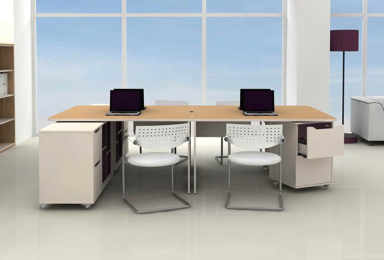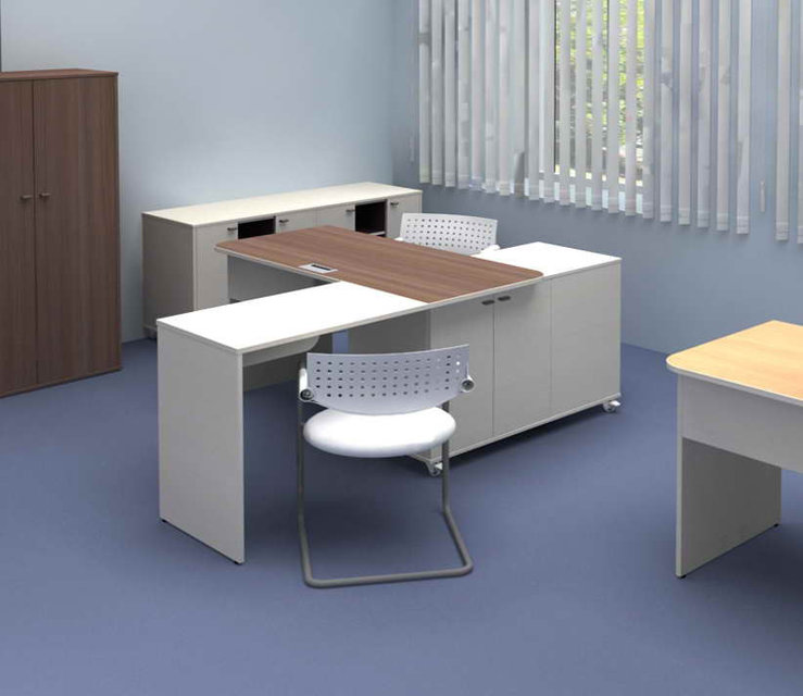 Состав комплекта: стол рабочий, конференц-приставка, переговорный стол, сервисная тумба (тумба помощник), мобильная тумба, шкаф для документов, шкаф-гардероб, тумба под теле-видео аппаратуру, тумба под встраиваемый холодильник (фригобар).