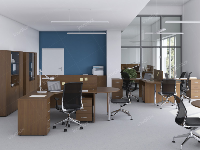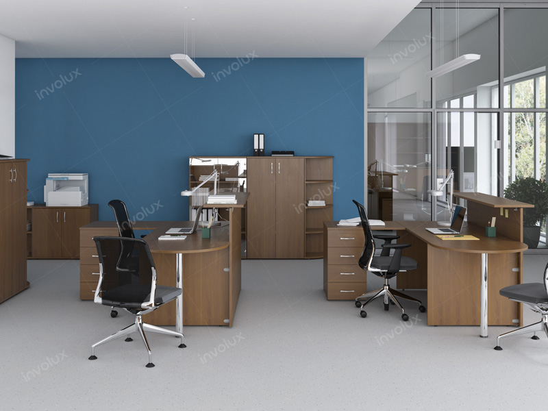 код 88451Комплексное оборудование рабочих мест в тонах темного дерева.