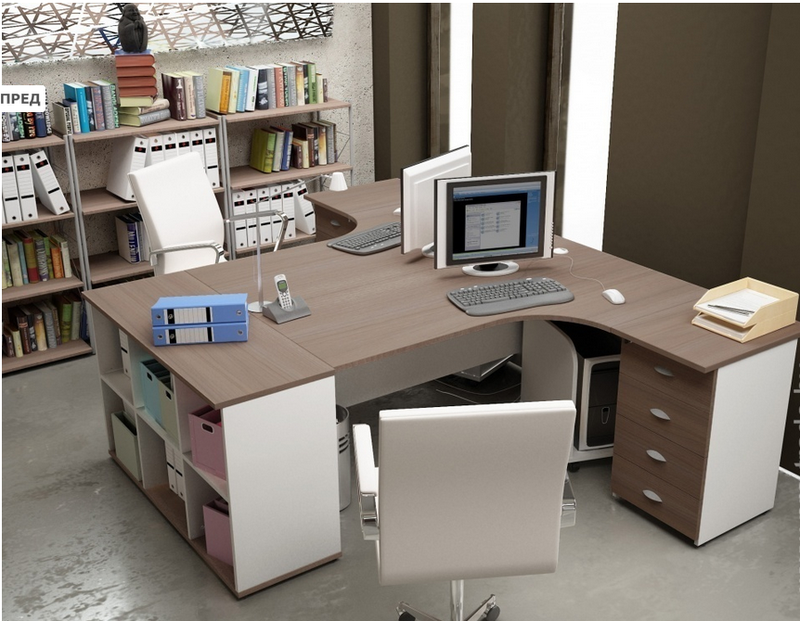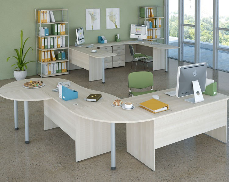 Состав комплекта: стол рабочий, конференц-приставка, переговорный стол, сервисная тумба (тумба помощник), мобильная тумба, шкаф для документов, шкаф-гардероб, тумба под теле-видео аппаратуру, тумба под встраиваемый холодильник (фригобар).