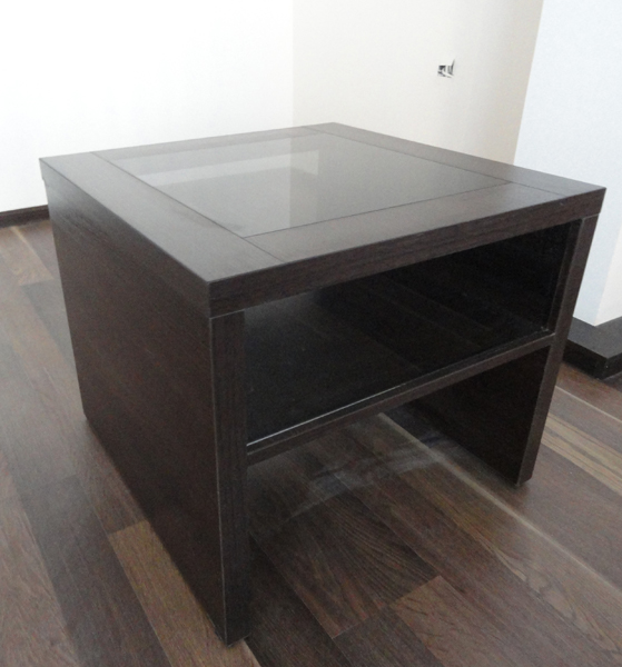 Угловая стойка. Встроенный остеклённый стеллаж.
