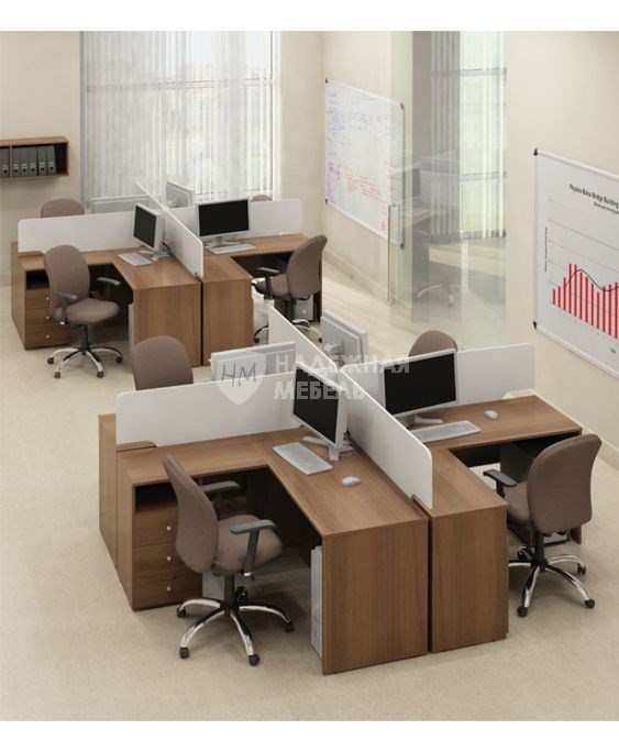 Два рабочих места. Тумбы с выдвижными ящиками.