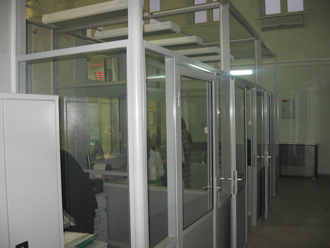 код 51724Каркас светло-серого цвета со стеклом. Отдельная рабочая зона для каждого сотрудника.