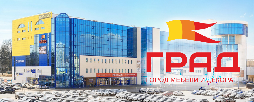 ТРЦ «ГРАД» - современный город мебели и декора с четко продуманной концепцией. Здесь на 5-ти этажах ТРЦ «ГРАД» объединены различные компании в сфере интерьерных решений, что дает возможность покупателю сэкономить время и приобрести товары для дома в одном месте.