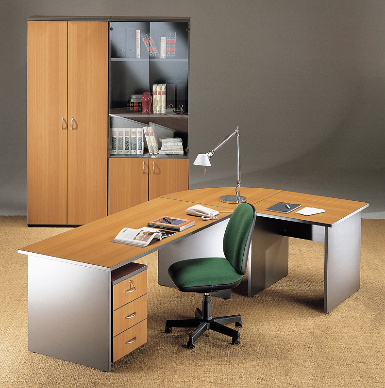 Угловой стол с широкой столешницей и тумбой. Функциональная и вместительная шкафная группа.