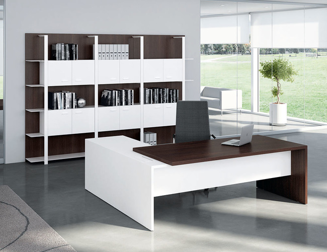 Цвет: венге. Стол руководителя, стол переговоров, стеллаж, шкаф.