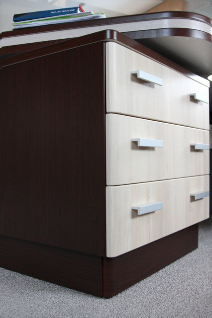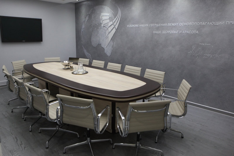 Состав комплекта: стол рабочий, конференц-приставка, переговорный стол, сервисная тумба (тумба помощник), мобильная тумба, шкаф для документов, шкаф-гардероб, тумба под теле-видео аппаратуру, тумба под встраиваемый холодильник (фригобар).
