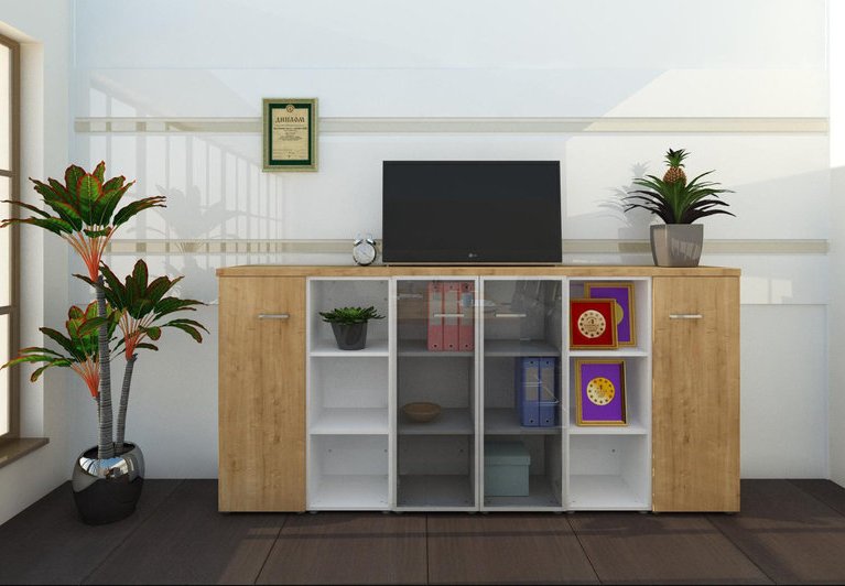 Состав комплекта: стол рабочий, конференц-приставка, переговорный стол, сервисная тумба (тумба помощник), мобильная тумба, шкаф для документов, шкаф-гардероб, тумба под теле-видео аппаратуру, тумба под встраиваемый холодильник (фригобар).