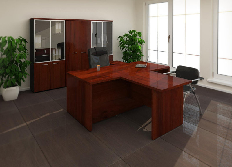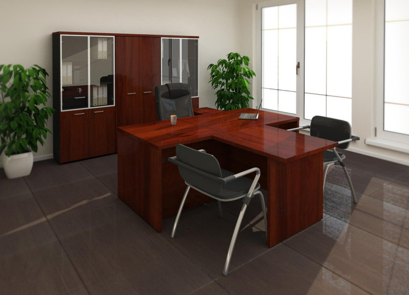 Мебельный набор для кабинета руководителя «Партнер» подчеркивает высокий статус и деловой подход организации. Центральным элементом набора является стол руководителя, оборудованный конференц-приставкой для приема сотрудников и гостей. В комплекте поставляется несколько офисных шкафов со стеклянными дверцами и шкаф-гардероб для хранения верхней одежды и головных уборов.