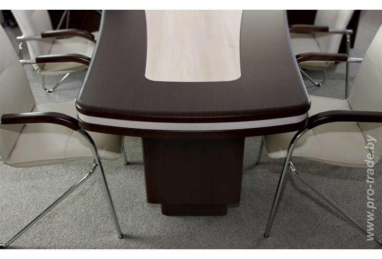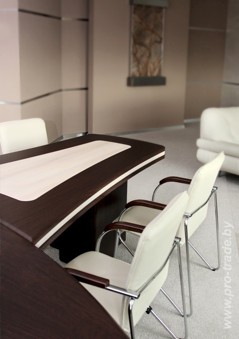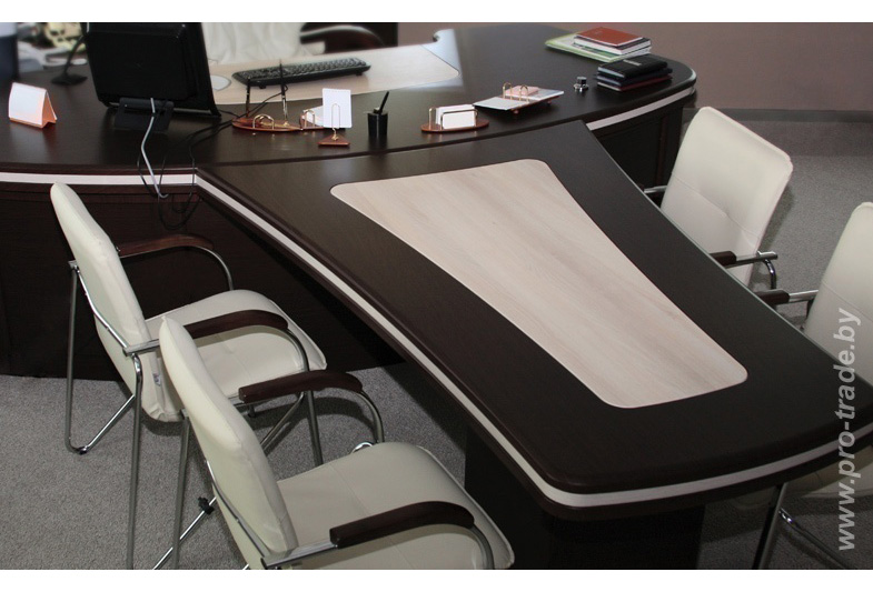 - порталы-тумбы рабочего стола, повторенные в оформлении столов-приставок и столов для переговоров