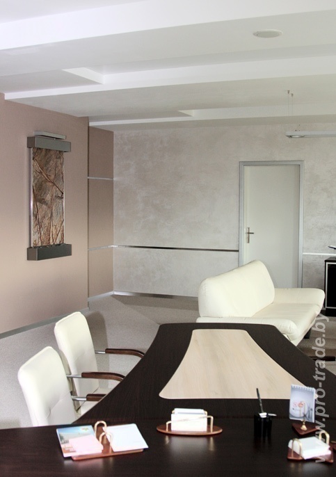 Основательность пропорций, уверенная динамика конструкций, строгость контрастных декоров придают кабинету невероятное ощущение фундаментальности, очаровательной деловитости и прогресса. Мягкие линии, строгие цвета, продуманность каждой детали невольно вызывают ассоциации с властью и подчеркивают высокое положение и безукоризненный вкус владельца кабинета “Интеллекта”.