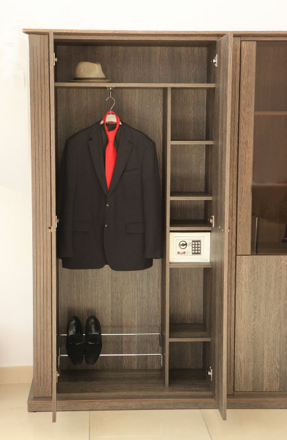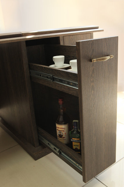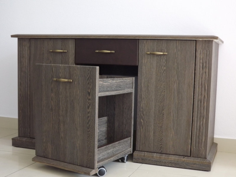 Выдвижные ящики под замком. Лаконичный дизайн в темном цвете.
