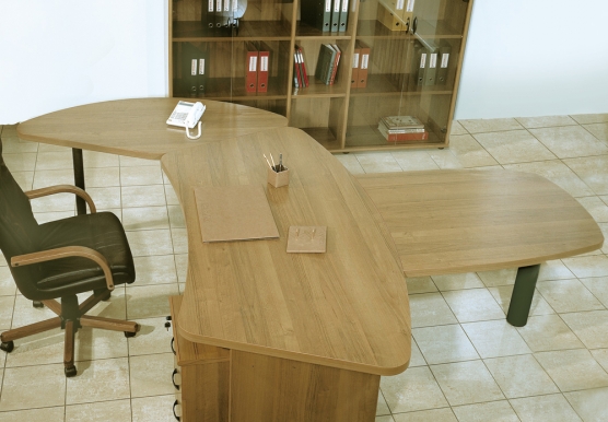 Дополнительно: Мебель для руководителя. Корпус, столешница - ДСП ламинированное «Kronopol» (Польша) – цвет "яблоня торино". Фасад - стекло.
