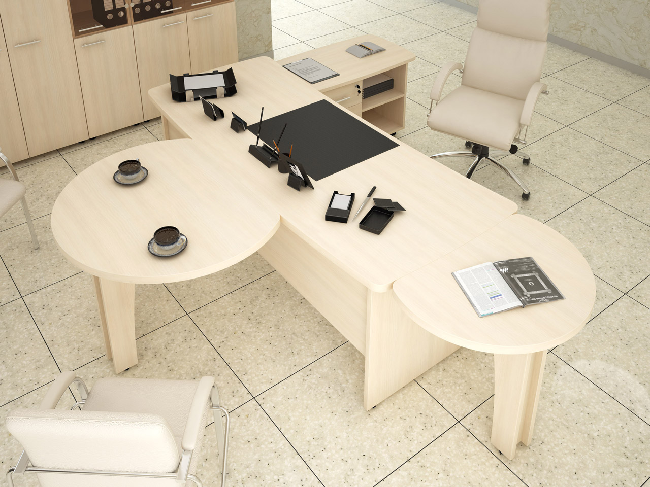Стол Б-118 - 1800х833х750 + Приставных 2 стола Б-378.2 - 980х788х750 и Б-353.2 - 760x533x750 + Тумба Б-410 - 1000x530x598