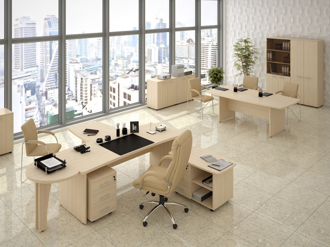 Комплектация: стол, тумба, шкаф-стеллаж.