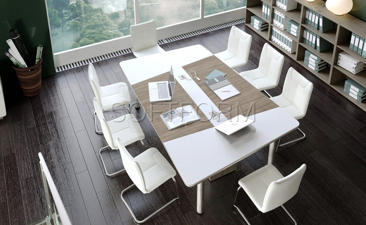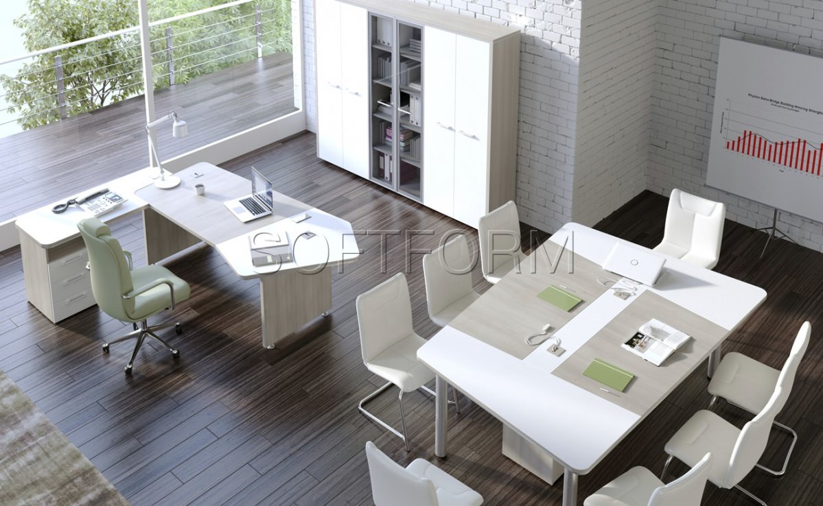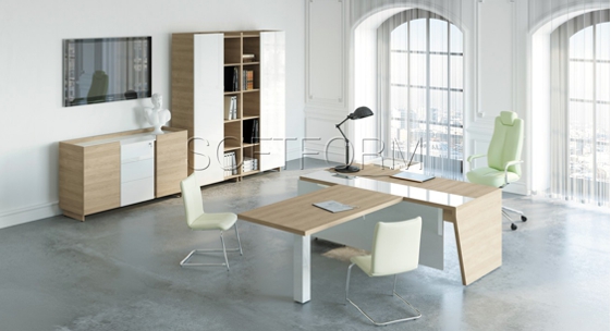 Библиотека, рабочий стол, кресло, два стула для посетителей.