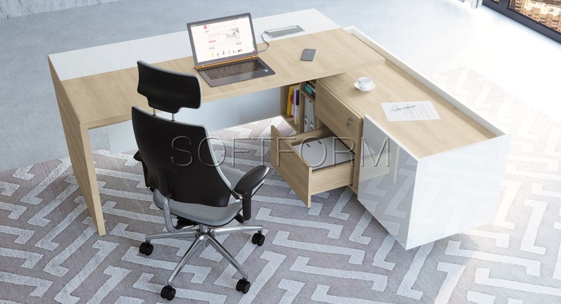 Модульная коллекция мебели в цвете дуба с черным обрамлением. Материал: ЛДСП.