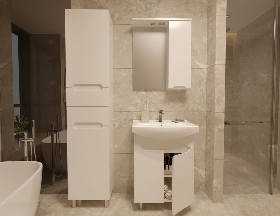 Подвесная тумба под раковину с распашными створками, пенал, шкаф.