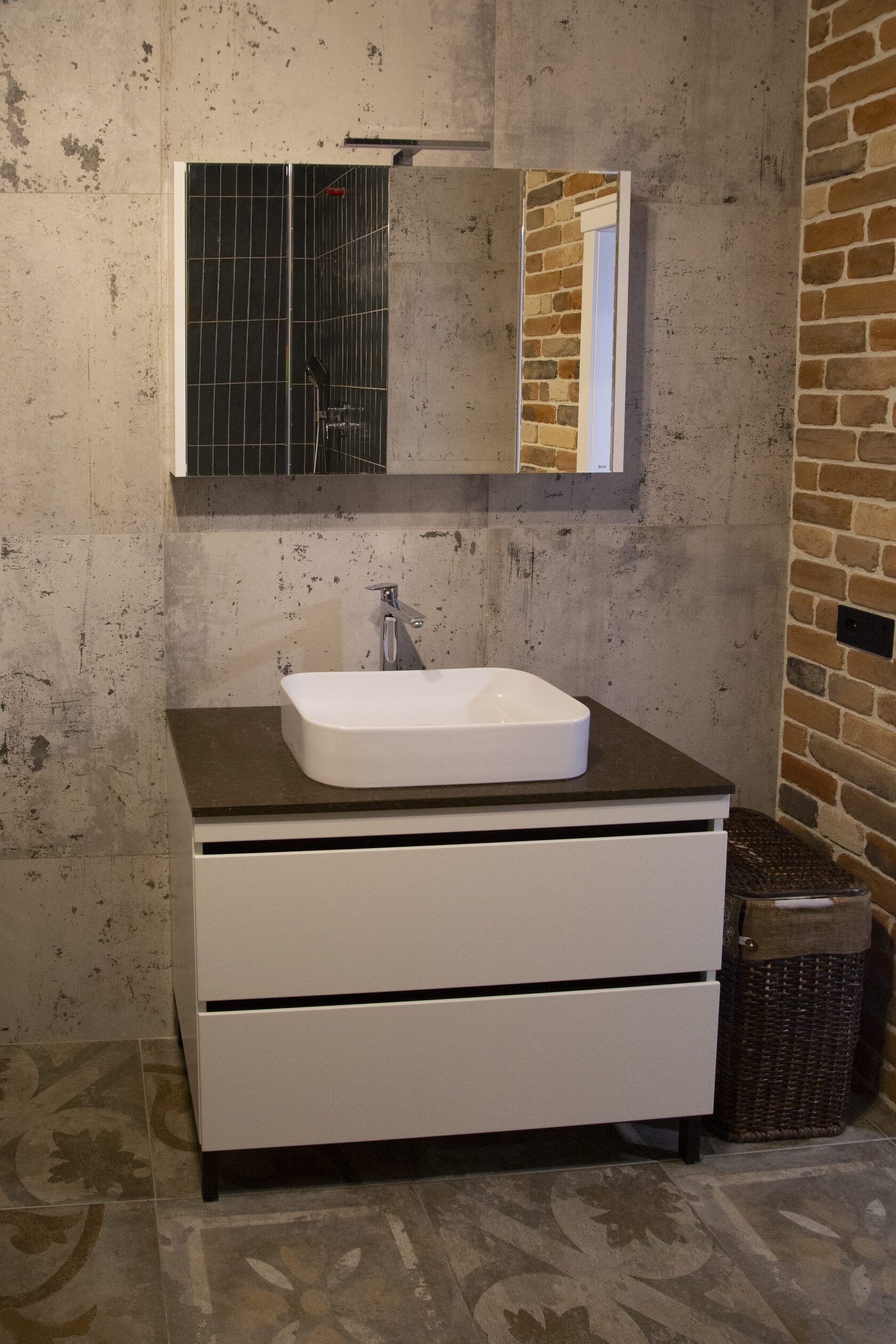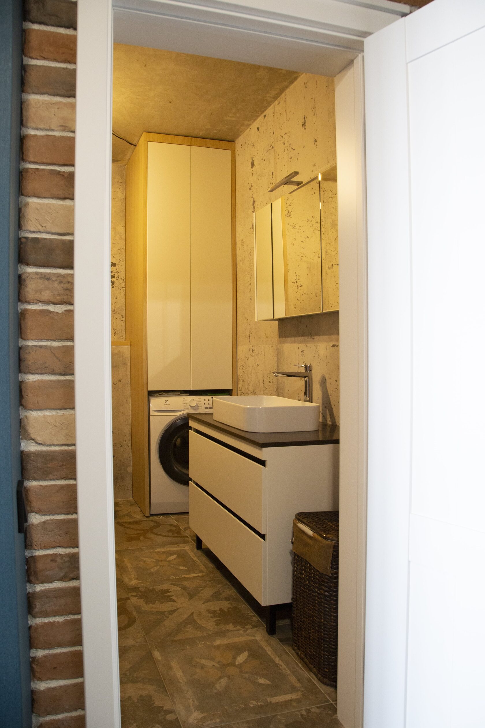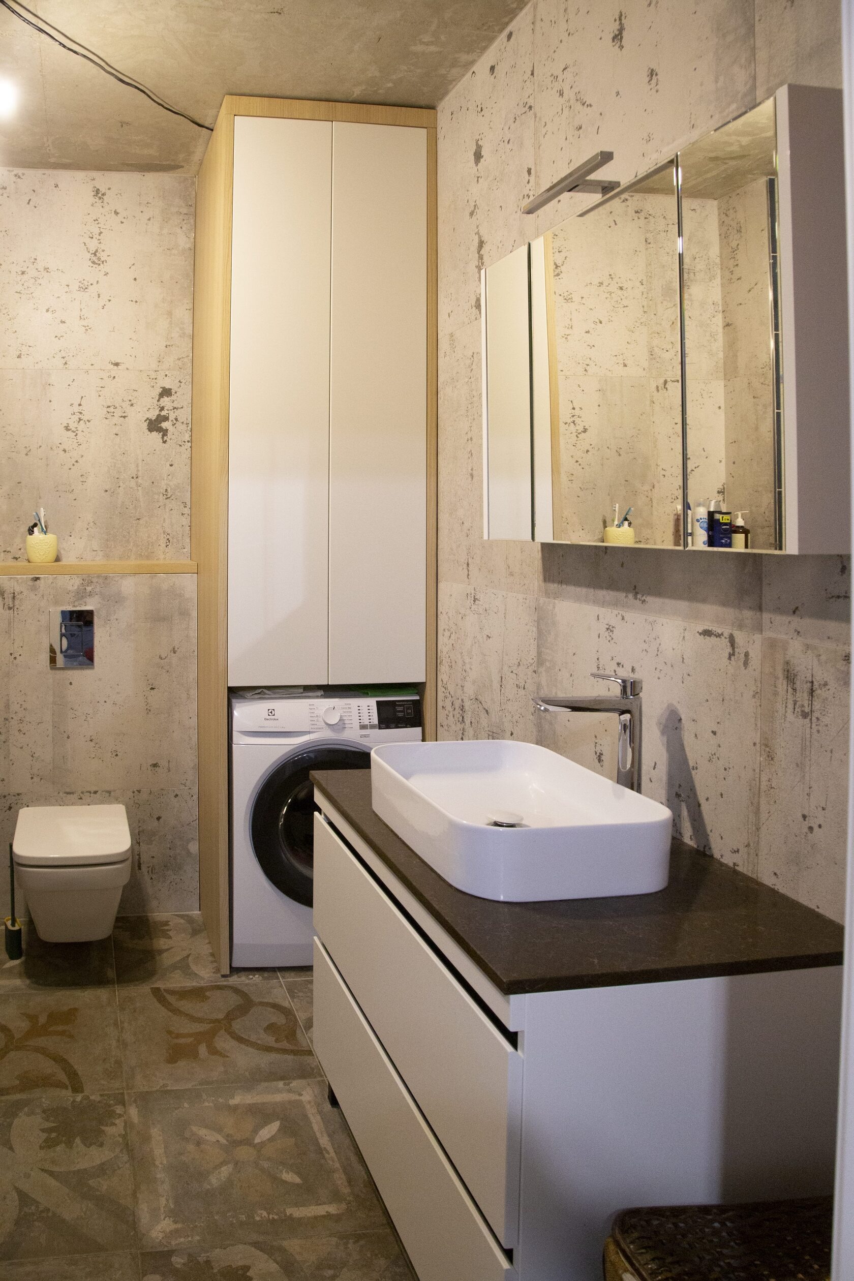 Шкафчики со встроенной сантехникой и с нишей для стиральной машины.