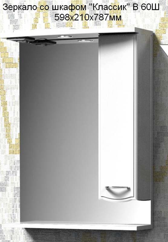 1) зеркало Классик В 60 Ш, пленка, 801х210х598 мм,