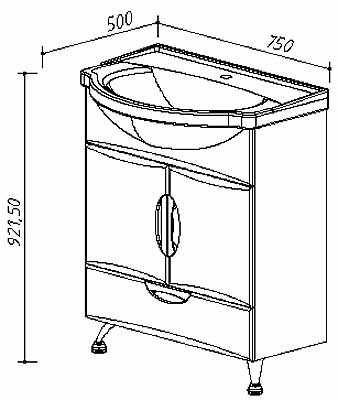2) тумба под умывальник Аквалина Н-75-01, 750х500х912,5 мм,