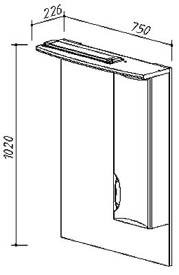 1) зеркало Венеция В 75Ш, размер: 750х226х1020 мм,
