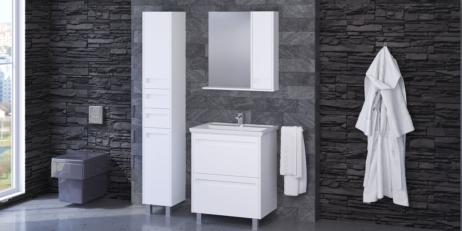 Тумба с корзиной для белья и пенал для хранения в ванную