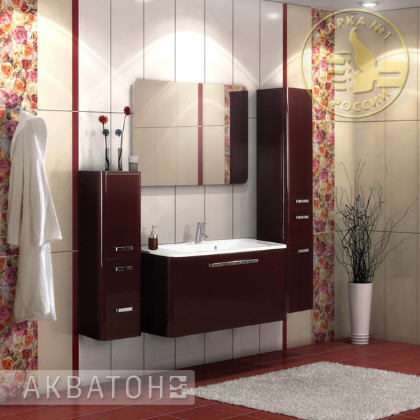 Коллекция выпускается в наиболее востребованных размерах – шириной 750 мм, 900 мм и 1100 мм. При отделке используются новые технологии. Тумба укомплектована раковиной из литого мрамора, а в зеркальных шкафах за створками расположены стеклянные полки. При желании вместо зеркального шкафа можно выбрать зеркало с подогревом, подствекой, выключателем и розеткой.