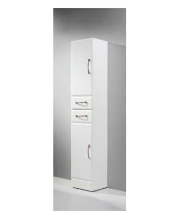 Подвесная тумба под раковину с выдвижными ящиками и пеналом. Черные фасады, белый корпус.
