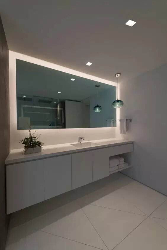 Подвесная тумба и два шкафчика, глянцевые фасады.