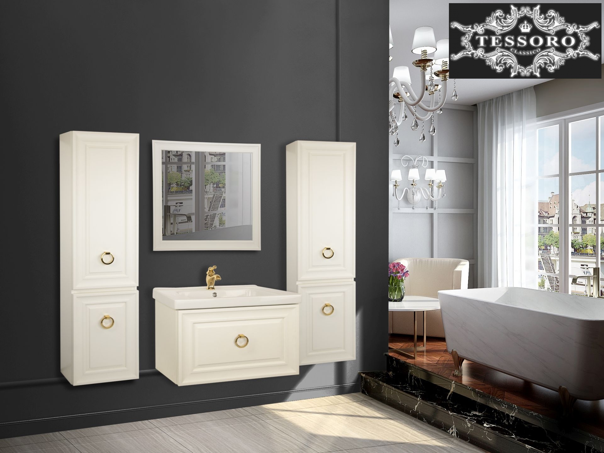 Производится из МДФ. Возможны различные варианты ручек, как по форме, так и по цвету в золоте, хроме и бронзе. Мебель комплектуется столешницей из кварцевого камня толщиной 10 мм или натурального мрамора, толщиной 20 мм.