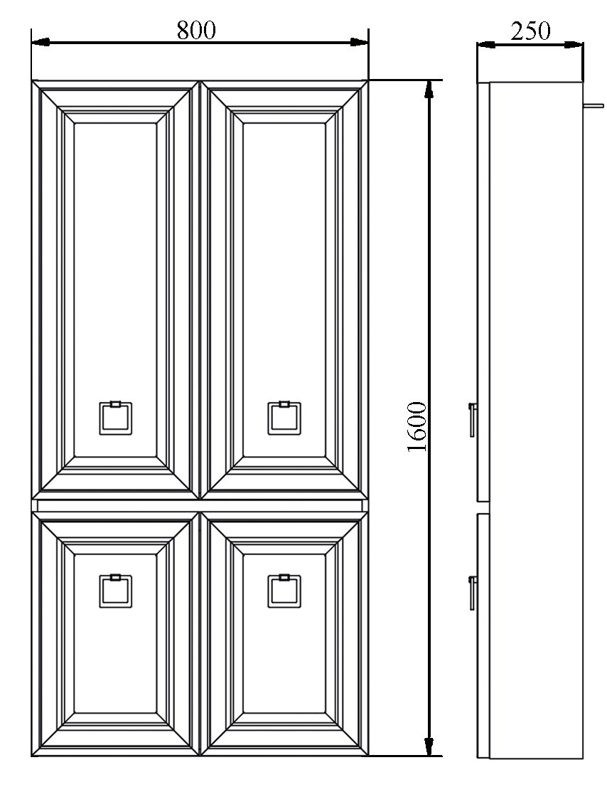 Колонка подвесная 4дв: (ш) 800 х (в) 1600 х (г) 250 мм