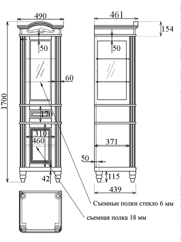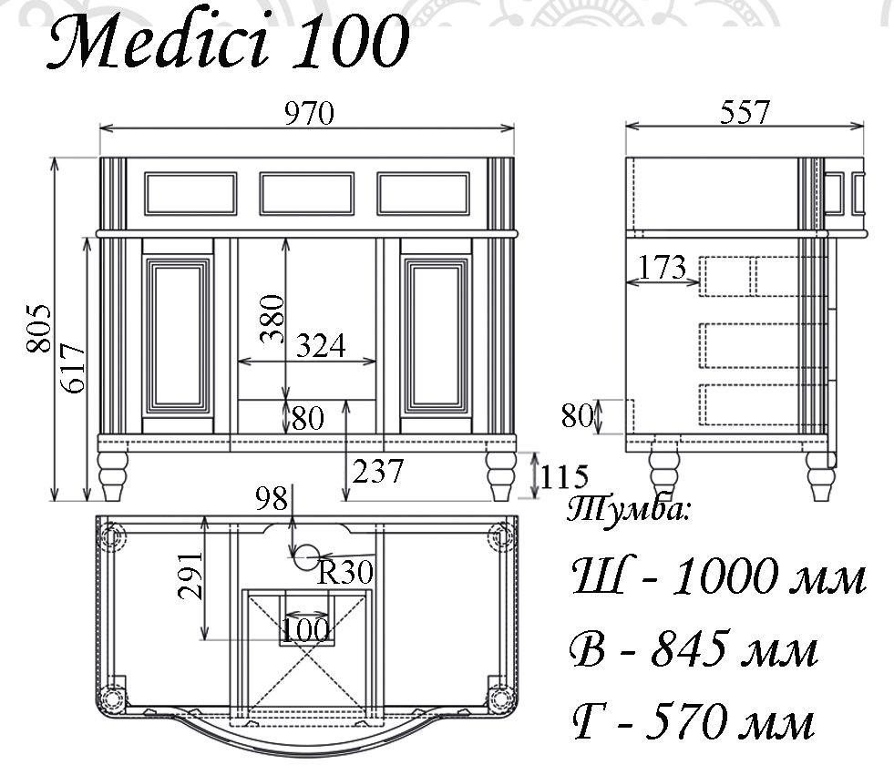 Тумба: (ш) 1000 х (в) 845 х (г) 570 мм