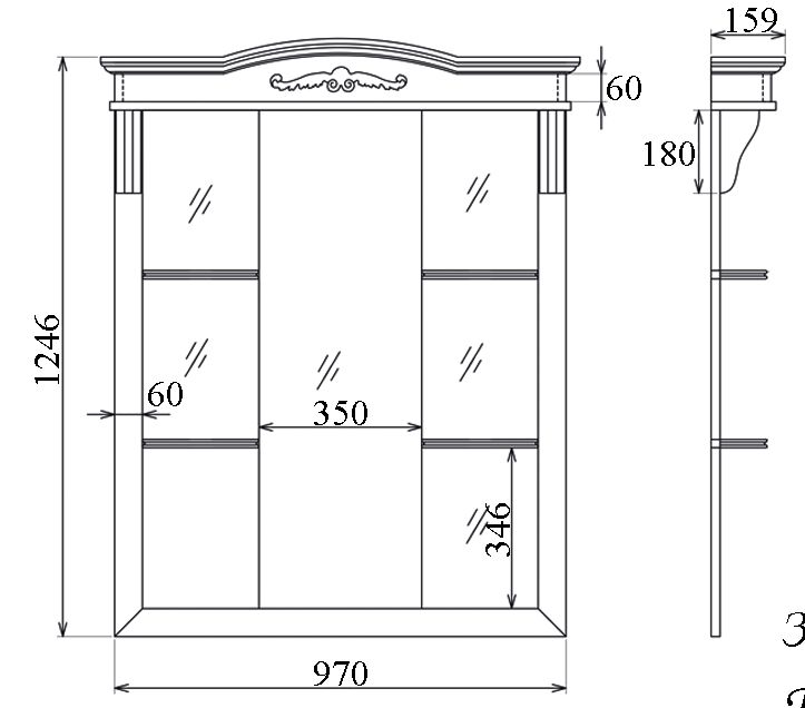 Зеркало: (ш) 1030 х (в) 1280 х (г) 159 мм