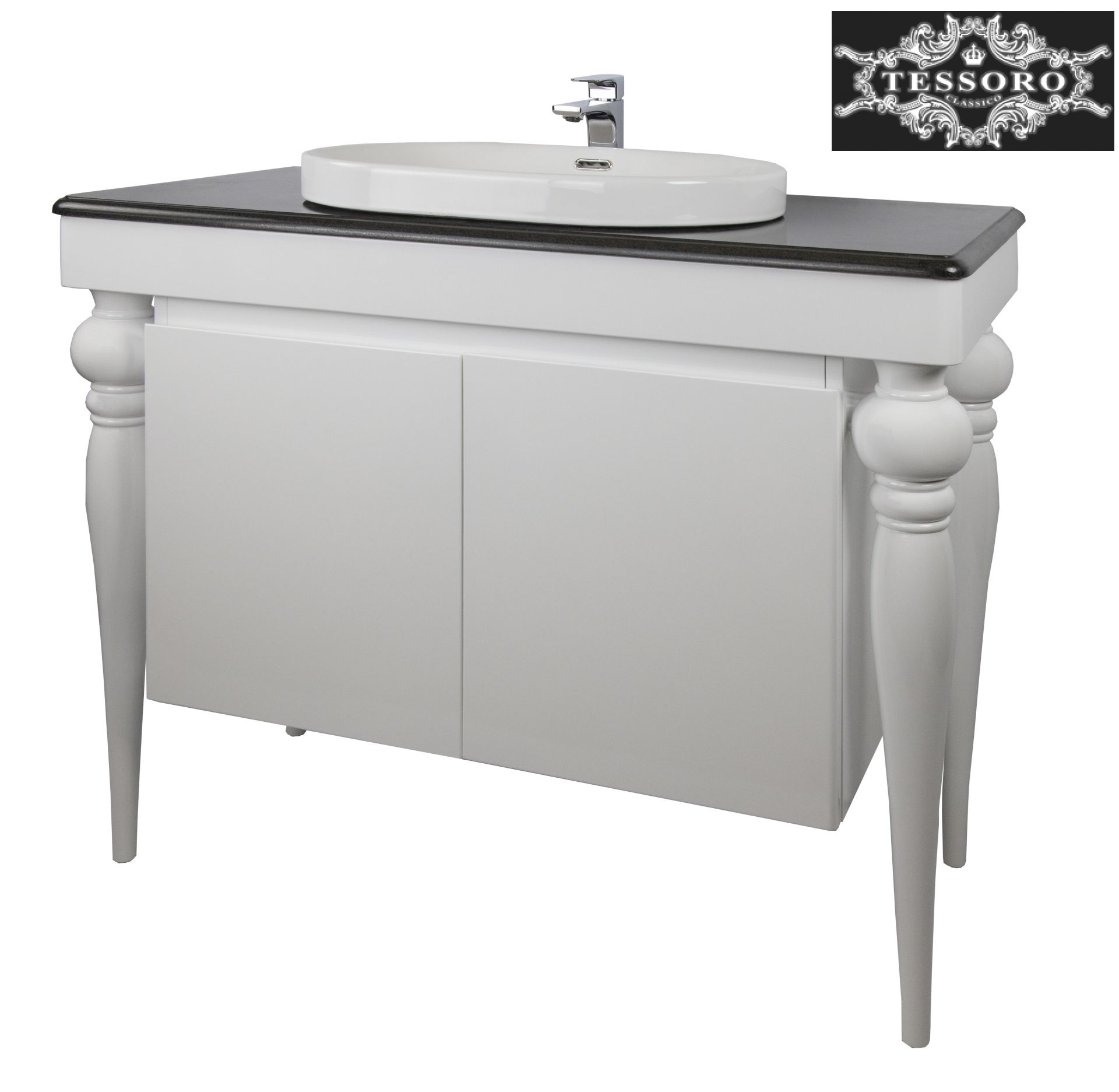 Производитя из МДФ, ножки из массива, при отделке используется матовая эмаль: белого, черного и цвета ивори. Модель выполнена с фрезерованной ручкой. Комплектуется как раковиной под столешницу, так и врезной или накладной раковиной.
