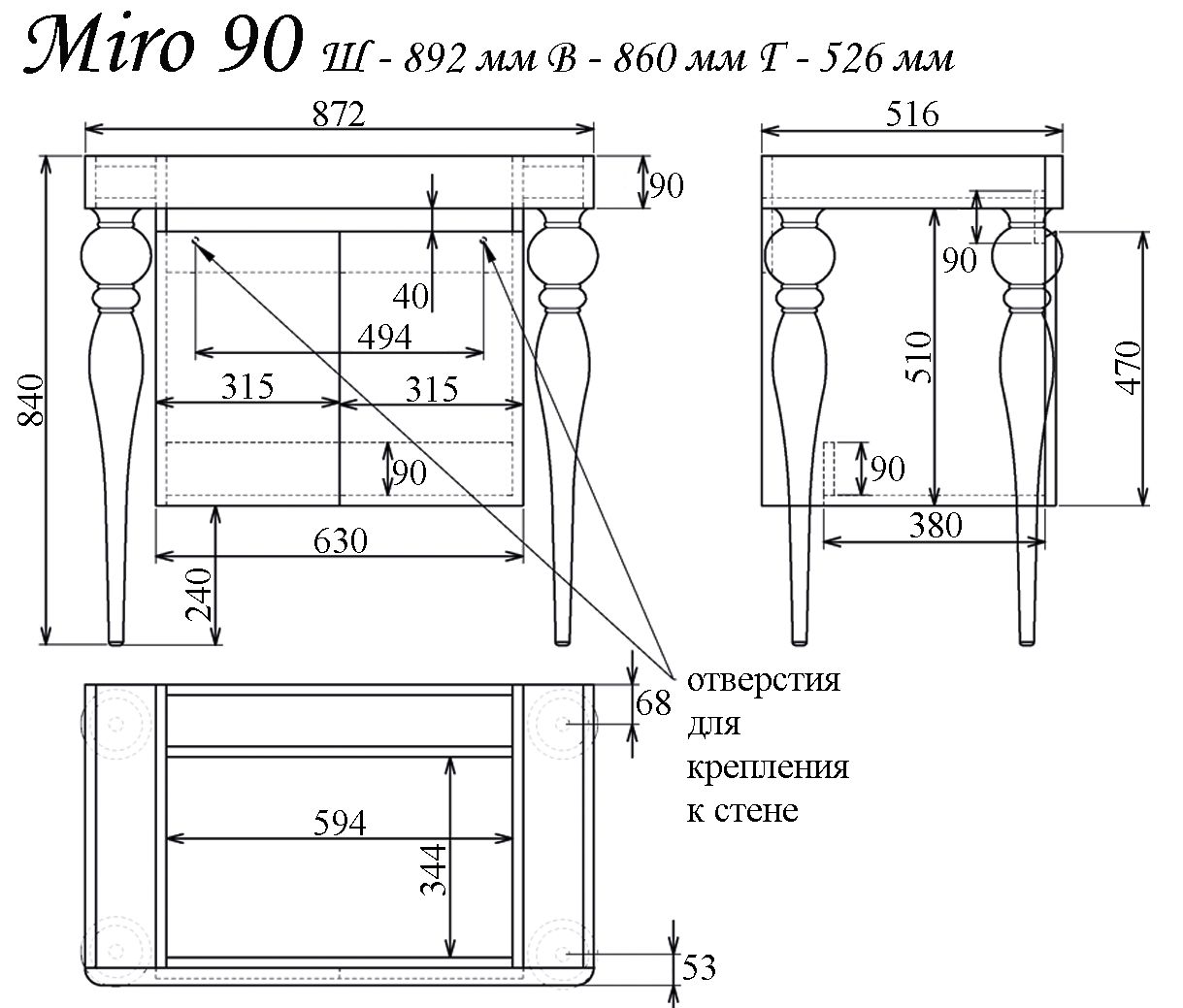 Miro 90: (ш) 892 х (в) 860 х (г) 526 мм