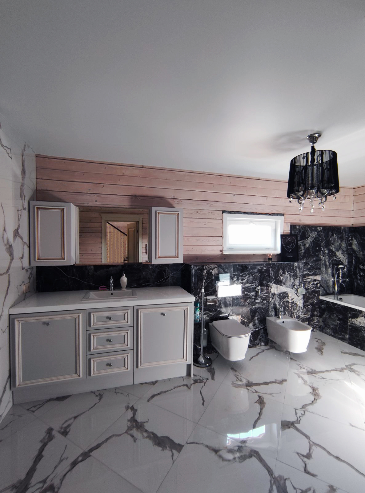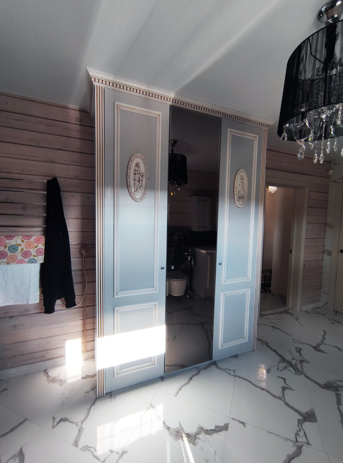 Шкафчики со встроенной сантехникой и с нишей для стиральной машины.