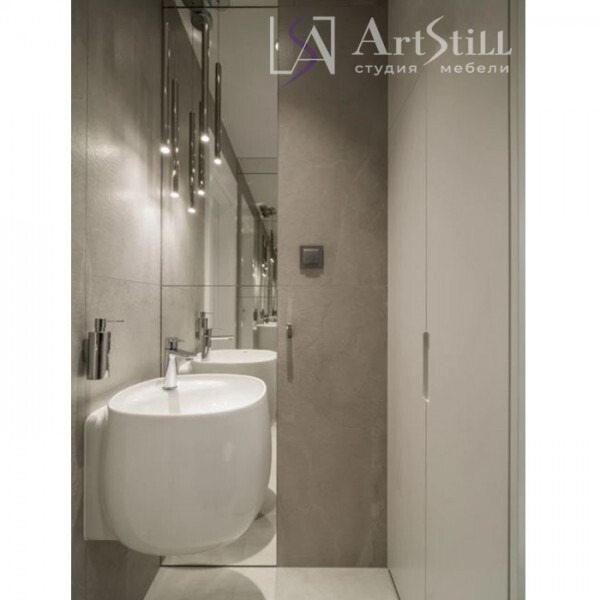 Ванна выполнен в «Современном стиле». Ванная на заказ выполнена до потолка.
