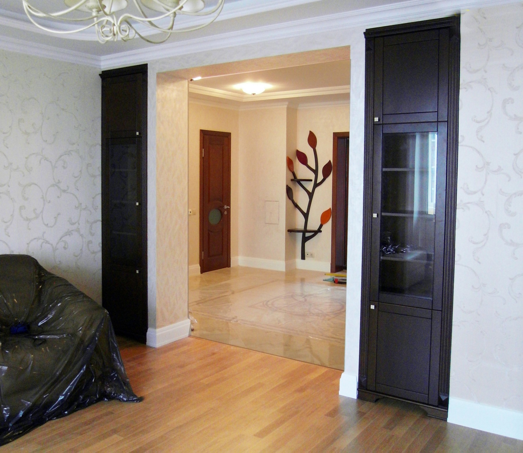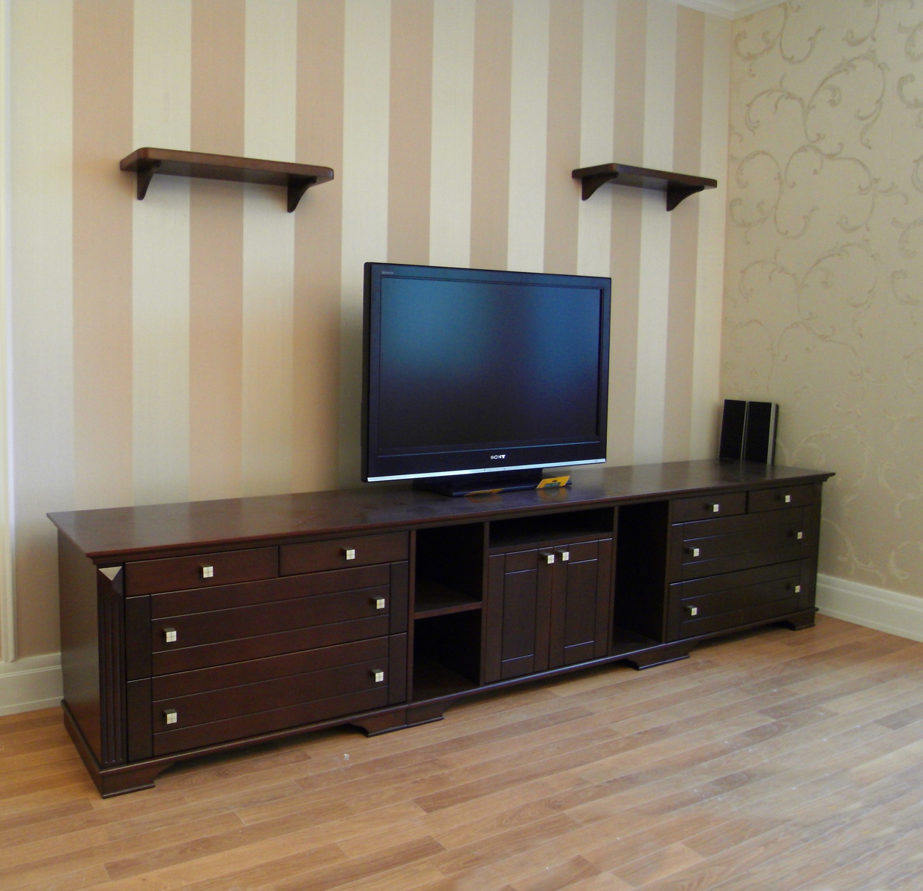 База под ТВ с встроенными в нишу витринами