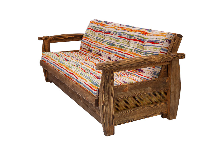 Садовый диван изготовлен из массива сосны. Весь внешний вид изделия говорит о его надежности и качественном исполнении. Модель обработана специальным составом, защищающим ее от неблагоприятных воздействий окружающей среды. В комплекте с диваном идут мягкие съемные подушки, которые подарят дополнительный комфорт во время отдыха.